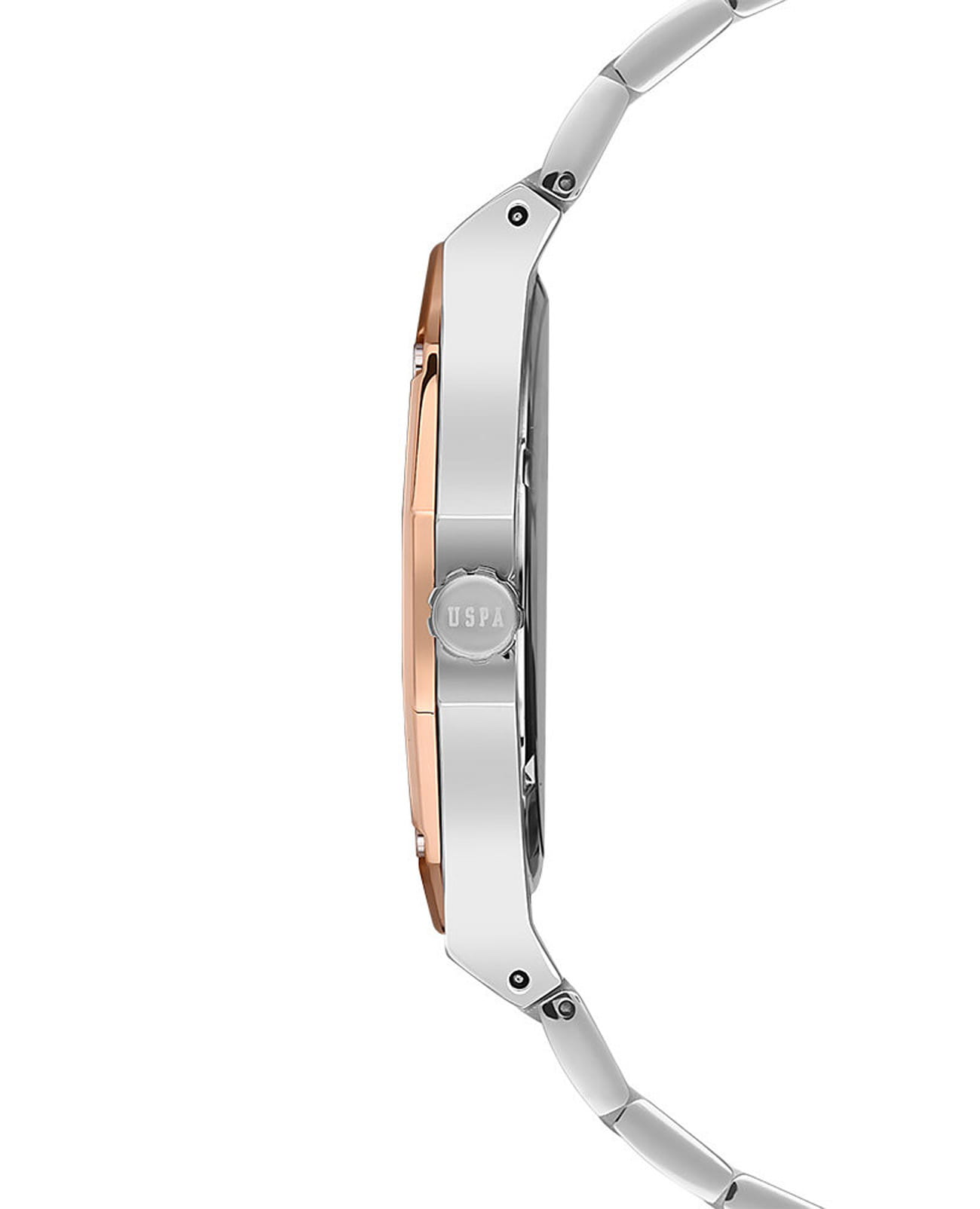 Мужские часы U.S. Polo Assn. Fundamental USPA1056-02, кварцевый механизм с высокой точностью. Минеральное стеклоМинеральное стеклоМинеральное стекло представляет собой искусственно выращенный минерал кварца. Такое стекло отличается особой устойчивостью к повреждениям и царапинам. Уступает по некоторым качествам сапфировому стеклу. устойчивое к появлению царапин, обладающее высокой прозрачностью. Корпус изготовлен из нержавеющей стали. БезельБезельВнешний ободок, закрепляющий стекло. В спортивных часах так называется поворотное кольцо с делениями на циферблате, выполняет роль таймера – замеряет отрезки времени на шкале. Неподвижный безель – элемент декора. Однонаправленно вращающийся безель на дайверских часах позволяет фиксировать моменты погружения и выныривания на поверхность. из нержавеющей стали с IP-покрытиемIP-покрытиеМетод ионного напыления. Демонстрирует повышенную устойчивость к истиранию, окислению и химическим веществам. Под воздействием высокого давления и температуры около 1500°C молекулы металла надёжно соединяются с частицами корпуса часов.. Окошко даты в положении 3 часов. Класс водозащиты: 50 метров, позволит защитить корпус от случайных брызг или капель дождя. Стальной браслет с частичным IP-покрытиемIP-покрытиеМетод ионного напыления. Демонстрирует повышенную устойчивость к истиранию, окислению и химическим веществам. Под воздействием высокого давления и температуры около 1500°C молекулы металла надёжно соединяются с частицами корпуса часов. на застёжке «бабочка» с кнопкамиЗастёжка "бабочка"Такой вид застёжки дополняется предохранителями, помогающими избежать случайного раскрытия браслета. Обладают изящным исполнением. .