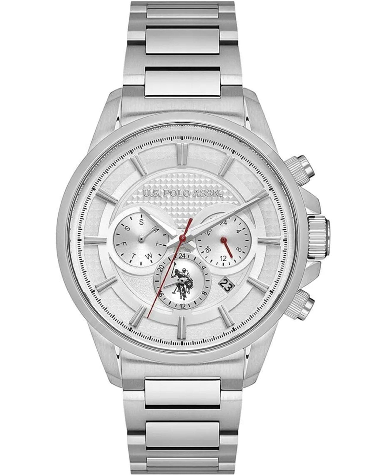 Мужские элегантные американские часы U.S. Polo Assn. Crossing USPA1084-04 обладают кварцевым механизмом с высокой точностью. Минеральное стеклоМинеральное стеклоМинеральное стекло представляет собой искусственно выращенный минерал кварца. Такое стекло отличается особой устойчивостью к повреждениям и царапинам. Уступает по некоторым качествам сапфировому стеклу. устойчивое к появлению царапин, обладающее высокой прозрачностью. Изысканный корпус изготовлен из нержавеющей стали. Серебристые центральные часовая, минутная и секундная стрелки. 24-х часовой формат времени, день недели вынесены на отдельный циферблат. Часы оснащены люминесцентным покрытиемЛюминесцентное покрытиеПозволяет считывать показания времени в темноте. Производители наносят на стрелки, часовые индексы, безель или поверхность циферблата светонакопительный состав, дающий холодное свечение., обеспечивающим хорошую читаемость в темноте. Класс водозащиты: 50 метров, позволит защитить корпус от случайных брызг или капель дождя. Стальной браслет с раскладной застёжкойРаскладная застёжкаТакой тип застёжки используется только на браслетах из металла. Она никогда не раскрывается полностью, происходит разделение на 2 и более частей. Раскладывающая застёжка снизит вероятность потери часов к минимуму. обеспечивает комфорт и удобство в использовании, добавляя завершающий штрих к этому стильному и высокоэффективному аксессуару. Окошко даты находится в положении между 4 и 5 часами. Это практичный и стильный инструмент для активной повседневности, объединяющий точный механизм и удобство.