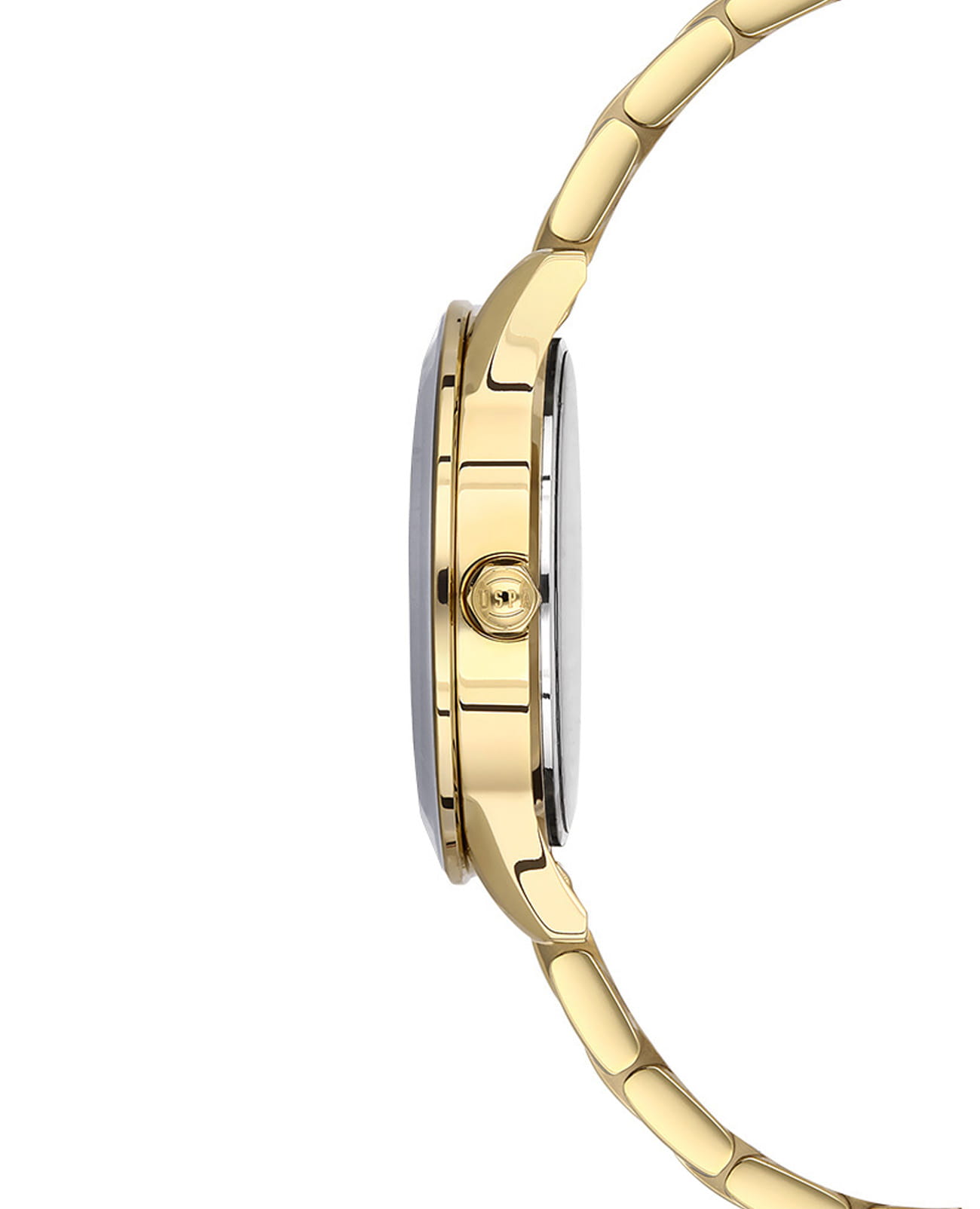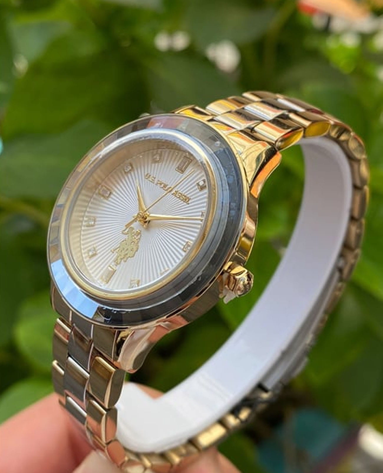 Женские часы U.S. Polo Assn. Fundamental USPA2044-06, кварцевый механизм с высокой точностью. Минеральное стеклоМинеральное стеклоМинеральное стекло представляет собой искусственно выращенный минерал кварца. Такое стекло отличается особой устойчивостью к повреждениям и царапинам. Уступает по некоторым качествам сапфировому стеклу. устойчивое к появлению царапин, обладающее высокой прозрачностью. Корпус изготовлен из нержавеющей стали с IP-покрытиемIP-покрытиеМетод ионного напыления. Демонстрирует повышенную устойчивость к истиранию, окислению и химическим веществам. Под воздействием высокого давления и температуры около 1500°C молекулы металла надёжно соединяются с частицами корпуса часов.. Граненый стеклянный безельБезельВнешний ободок, закрепляющий стекло. В спортивных часах так называется поворотное кольцо с делениями на циферблате, выполняет роль таймера – замеряет отрезки времени на шкале. Неподвижный безель – элемент декора. Однонаправленно вращающийся безель на дайверских часах позволяет фиксировать моменты погружения и выныривания на поверхность.. Метки украшены кристаллами. Класс водозащиты: 50 метров, позволит защитить корпус от случайных брызг или капель дождя. Стальной браслет с частичным IP-покрытиемIP-покрытиеМетод ионного напыления. Демонстрирует повышенную устойчивость к истиранию, окислению и химическим веществам. Под воздействием высокого давления и температуры около 1500°C молекулы металла надёжно соединяются с частицами корпуса часов. на раскладной застёжкеРаскладная застёжкаТакой тип застёжки используется только на браслетах из металла. Она никогда не раскрывается полностью, происходит разделение на 2 и более частей. Раскладывающая застёжка снизит вероятность потери часов к минимуму..