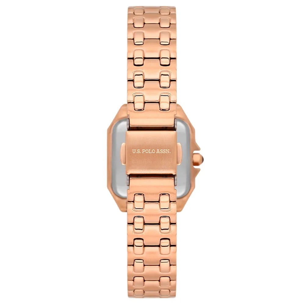 Женские наручные часы U.S. Polo Assn. Stile USPA2074-03 — это стильный и лаконичный аксессуар. Модель изготовлена из стали с PVD-покрытиемPVDУльтратонкое покрытие наносится в технике вакуумного напыления, сочетает в себе нитрид титана особой прочности со слоем золота или оксида хрома. Несёт в себе декоративную или защитную функцию., придающий благородный внешний вид и устойчивость к царапинам. Изысканный циферблат дополнен секундной стрелкой, обеспечивающей точность отсчёта времени. Защиту циферблата обеспечивает минеральное стеклоМинеральное стеклоМинеральное стекло представляет собой искусственно выращенный минерал кварца. Такое стекло отличается особой устойчивостью к повреждениям и царапинам. Уступает по некоторым качествам сапфировому стеклу., устойчивое к мелким повреждениям. Часы оснащены кварцевым механизмом, гарантирующим точность и минимальное обслуживание. Водонепроницаемость 3 АТМ позволяет использовать часы в повседневных условиях — при мытье рук или под лёгким дождём. Браслет из стали с PVD-покрытиемPVDУльтратонкое покрытие наносится в технике вакуумного напыления, сочетает в себе нитрид титана особой прочности со слоем золота или оксида хрома. Несёт в себе декоративную или защитную функцию. и оснащён раскладной застёжкойРаскладная застёжкаТакой тип застёжки используется только на браслетах из металла. Она никогда не раскрывается полностью, происходит разделение на 2 и более частей. Раскладывающая застёжка снизит вероятность потери часов к минимуму., обеспечивающей комфорт и уверенную фиксацию на запястье. Толщина корпуса составляет 9 мм, а его размер 27 мм, что делает часы компактными и удобными в носке. Эти часы станут универсальным аксессуаром для уверенных в себе женщин, которые ценят сочетание стиля, качества и эстетики — идеальный выбор для повседневного образа и торжественных случаев.