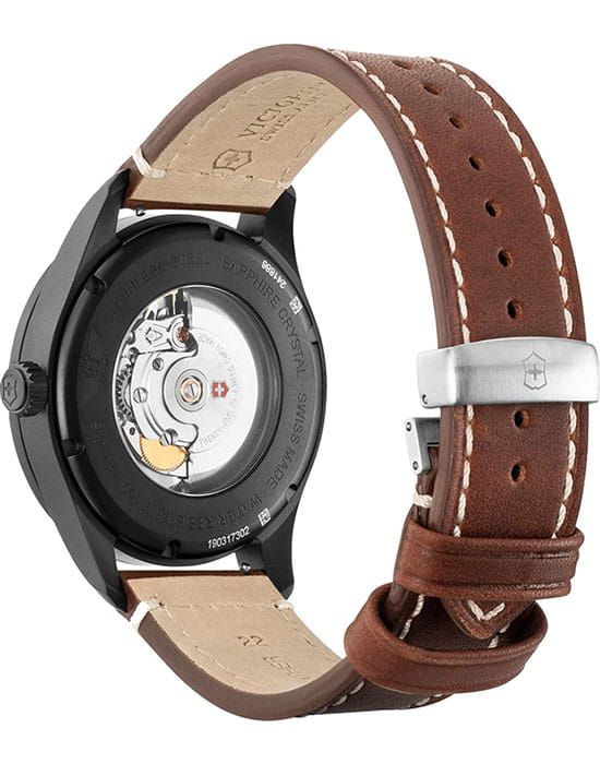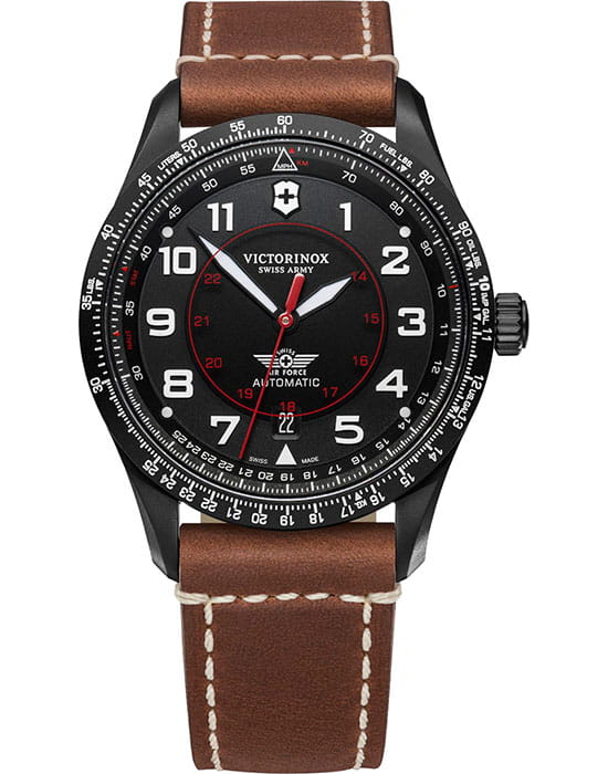 Мужские механические швейцарские часы с сапфировым стеклом Victorinox AirBoss 241886, механический механизм (автоматический калибр) с высокой точностью. Сапфировое стекло устойчивое к появлению царапин, обладающее высокой прозрачностью. Класс водозащиты: 100 метров, позволит плавать, нырять и заниматься другими водными видами спорта. Корпус часов изготовлен из стали, цвета.
