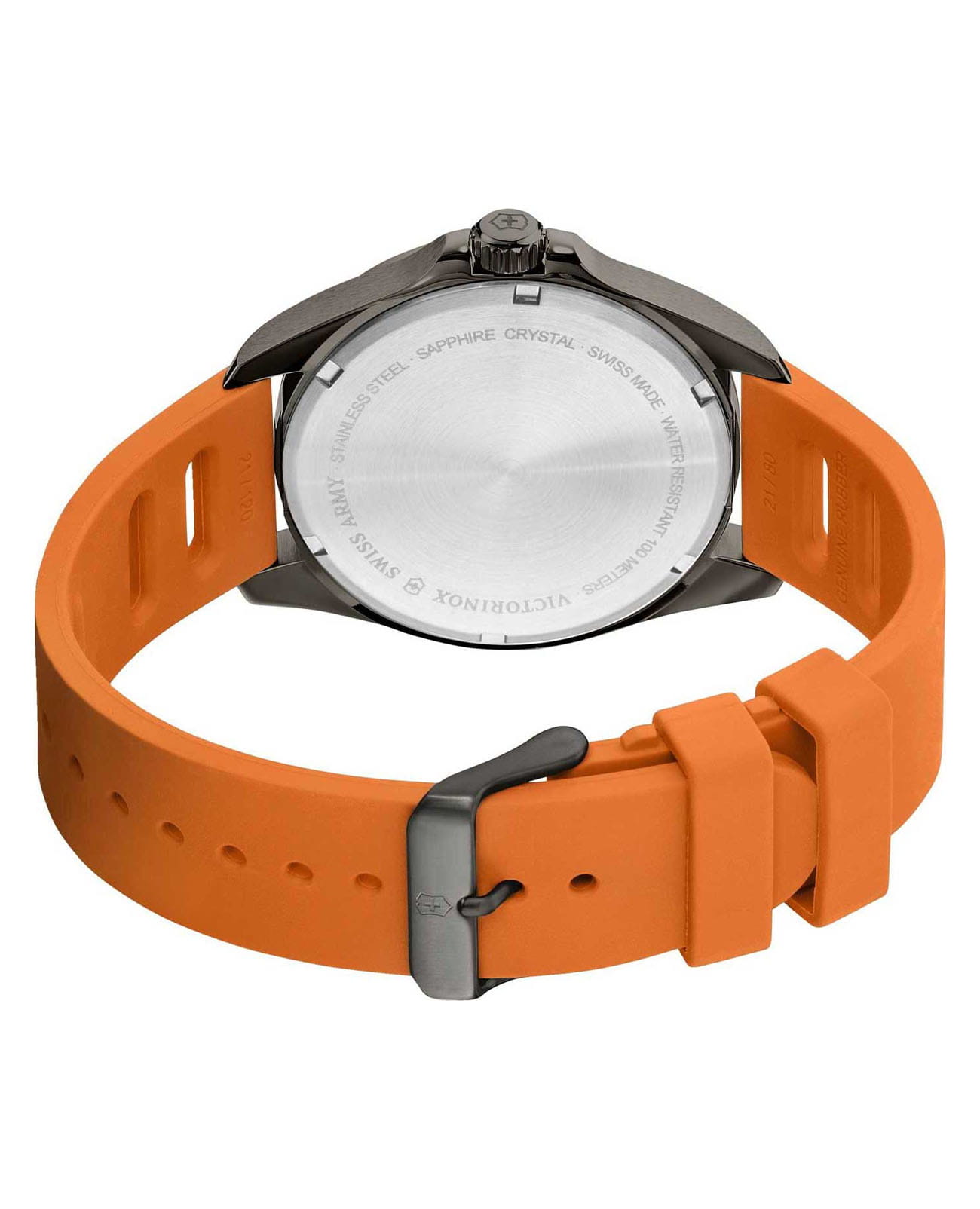 Мужские швейцарские часы-хронографХронографФункция позволяет измерять отрезки времени с особой точностью: часы, минуты, секунды. Верным признаком хронографа является наличие на циферблате 3 дополнительных окошек-счётчиков. Victorinox Fieldforce Sport Chronograph 241897 с надёжным кварцевым механизмом. Сапфировое стеклоСапфировое стеклоПрочный и надёжный материал из кристалла сапфира синтетического происхождения, характеризующийся особой твёрдостью и устойчивостью к царапинам и повреждениям. с трёхслойным антибликовым покрытием. Корпус часов выполнен из нержавеющей стали с PVD-покрытиемPVDУльтратонкое покрытие наносится в технике вакуумного напыления, сочетает в себе нитрид титана особой прочности со слоем золота или оксида хрома. Несёт в себе декоративную или защитную функцию.. Второй часовой пояс в 24-х часовом формате времени отображается дополнительной центральной стрелкой. Окошко даты находится в положении 3 часов, стрелки и метки с люминесцентным покрытиемЛюминесцентное покрытиеПозволяет считывать показания времени в темноте. Производители наносят на стрелки, часовые индексы, безель или поверхность циферблата светонакопительный состав, дающий холодное свечение.. Класс водозащиты: 100 метров, позволит плавать, нырять и заниматься другими водными видами спорта. Практичный резиновый ремешок на стандартной застёжке.