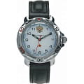 Механические часы Восток Командирские 811323 с гарантией. Корпус из высокопрочной стали с антикоррозийными свойствами. Ремешок из натуральной кожи черного цвета. Циферблат с арабскими цифрами и гербом России. Водонепроницаемость часов составляет 3 ATM. Минеральное стекло, устойчивое к появлению царапин.