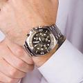 Швейцарские мужские кварцевые часы-хронограф Wainer WA.10300-C с механизмом хронографа и секундомером станут идеальным выбором для уверенных мужчин, ценящих каждую секунду времени. Круглый корпус из нержавеющей стали 316L с частичным PVD-покрытиемPVDУльтратонкое покрытие наносится в технике вакуумного напыления, сочетает в себе нитрид титана особой прочности со слоем золота или оксида хрома. Несёт в себе декоративную или защитную функцию. защищен прочным сапфировым стекломСапфировое стеклоПрочный и надёжный материал из кристалла сапфира синтетического происхождения, характеризующийся особой твёрдостью и устойчивостью к царапинам и повреждениям.. Циферблат украшен декоративным узором в виде волнистых линий и фирменным логотипом Wainer, метками в виде точек и оснащен окошком даты. Стрелки и метки с люминесцентным покрытиемЛюминесцентное покрытиеПозволяет считывать показания времени в темноте. Производители наносят на стрелки, часовые индексы, безель или поверхность циферблата светонакопительный состав, дающий холодное свечение. обеспечивают хорошую видимость в темное время суток. Поворотный безельБезельВнешний ободок, закрепляющий стекло. В спортивных часах так называется поворотное кольцо с делениями на циферблате, выполняет роль таймера – замеряет отрезки времени на шкале. Неподвижный безель – элемент декора. Однонаправленно вращающийся безель на дайверских часах позволяет фиксировать моменты погружения и выныривания на поверхность. и рифленая заводная головка с защитой добавляют практичности модели. Часы имеют класс водозащиты 200 метров, позволит плавать, нырять и заниматься другими водными видами спорта. Модель комплектуется стальным браслетом из нержавеющей стали 316L. Функциональный дизайн и надежное качество швейцарского производства делают эти часы превосходным выбором для современного мужчины.