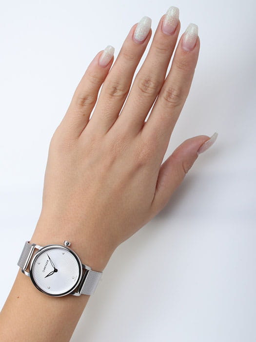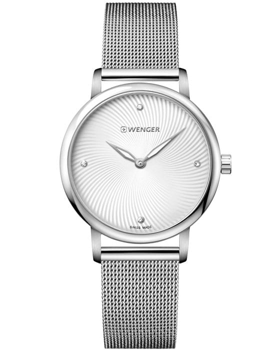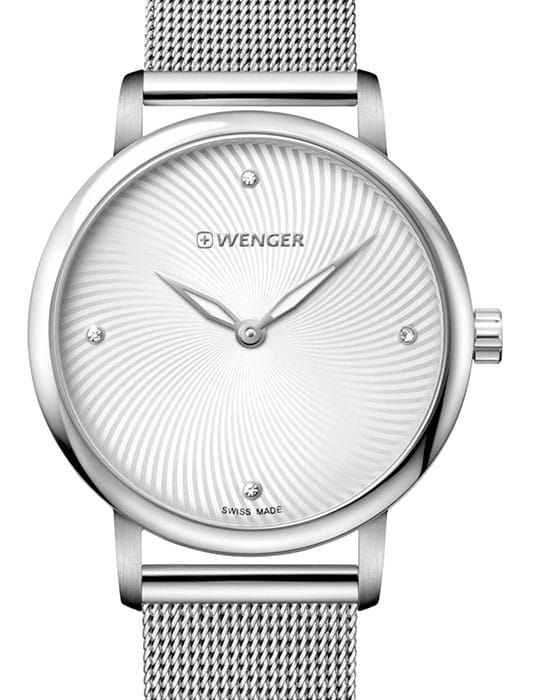 Женские швейцарские часы со стразами Wenger 01.1721.107, кварцевый механизм с высокой точностью. Класс водозащиты: 100 метров, позволит плавать, нырять и заниматься другими водными видами спорта. Корпус часов изготовлен из стали, серебристого цвета.