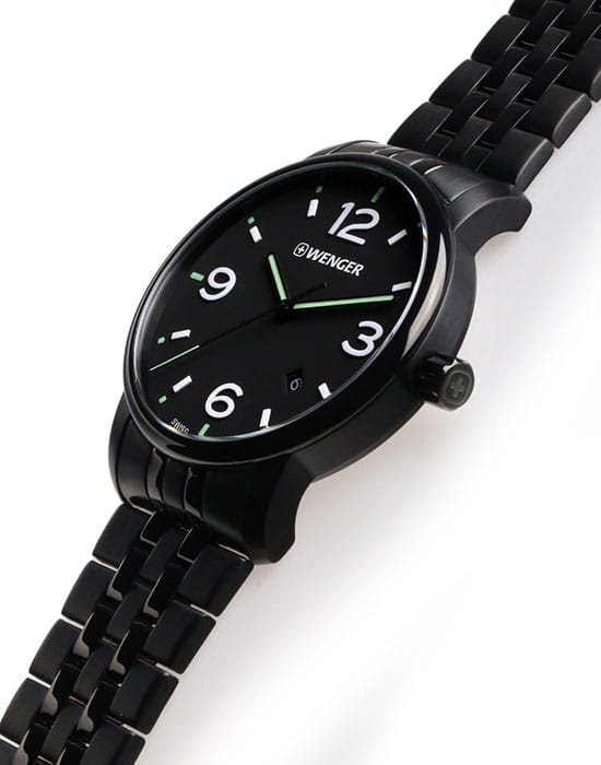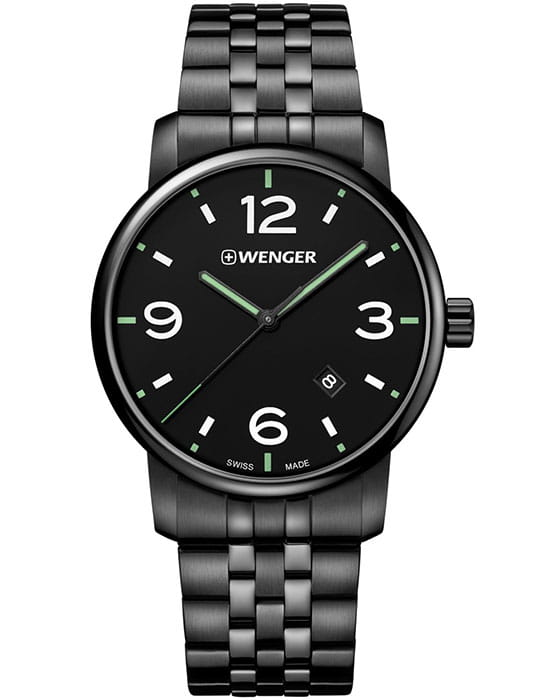 Швейцарские мужские часы в классическом стиле Wenger 01.1741.119, кварцевый механизм с высокой точностью. Класс водозащиты: 100 метров, позволит плавать, нырять и заниматься другими водными видами спорта. Корпус часов изготовлен из стали, черного цвета.